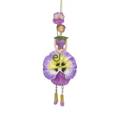 Een handgeschilderd Viooltjes Bloemenmeisje met bungelende beentjes
