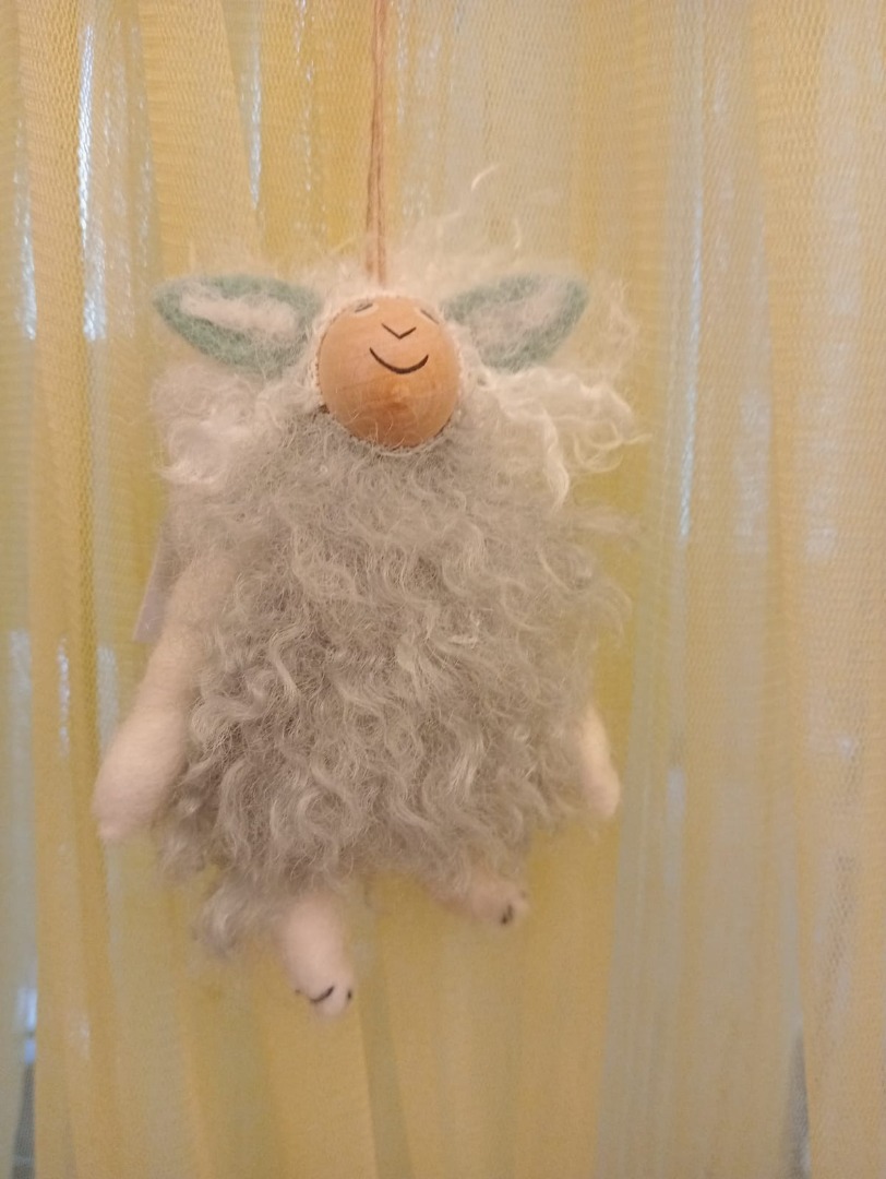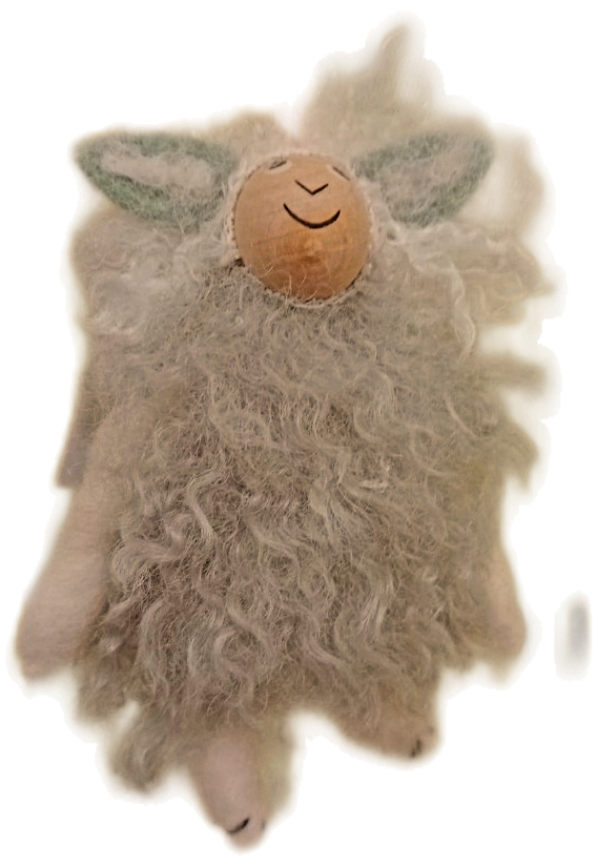 Een Paasschaapje gemaakt van lichtblauwe gevilte wol