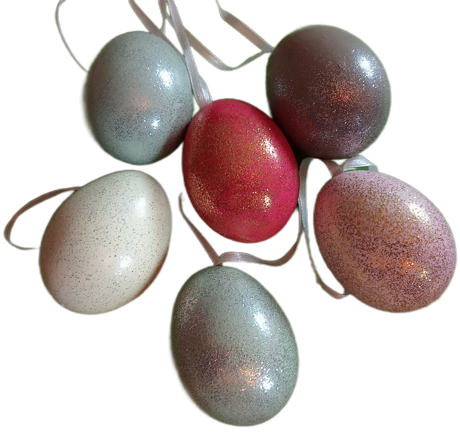 Aan de eieren zit een wit lintje, zodat u ze kunt ophangen in de