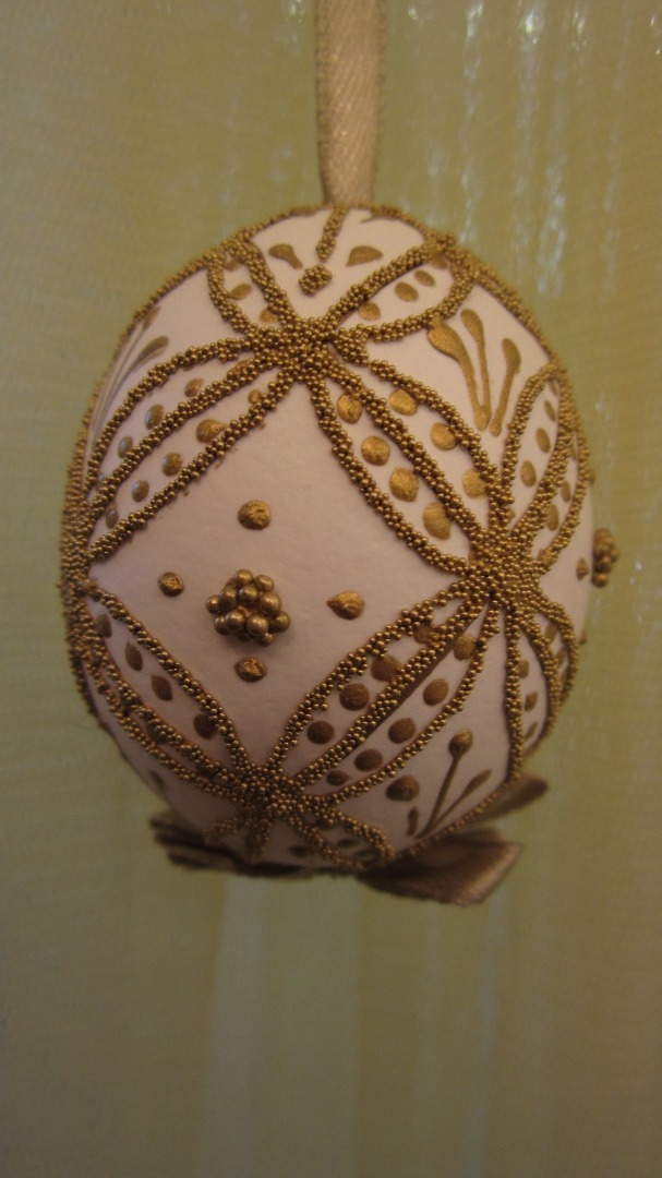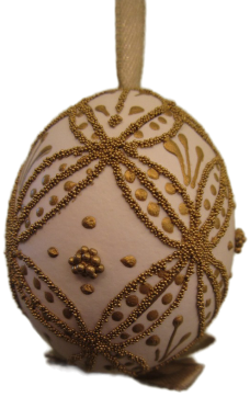 Met gouddraad gedecoreerd Paasei aan lint.
