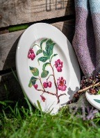 Weelderige Rode Kardinaalmuts met de hand gedecoreerd op een ontbijtbordje