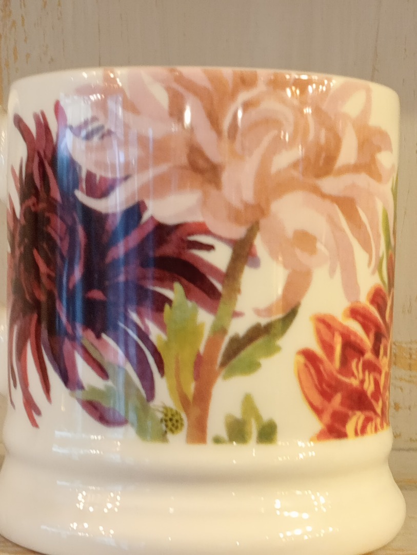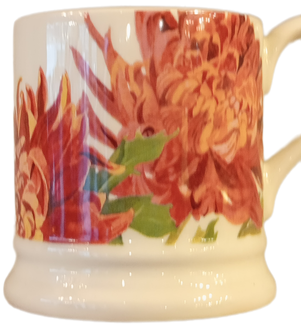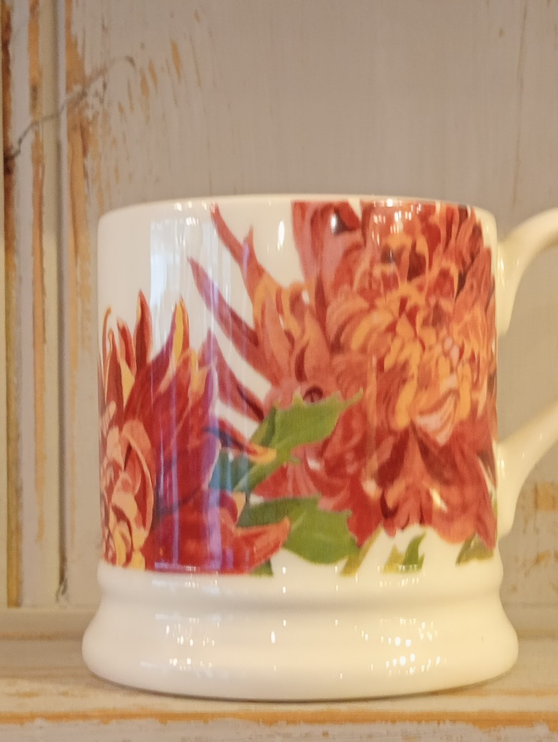 Oranje rode Chrysanten met de hand gedecoreerd op eren theebeker van